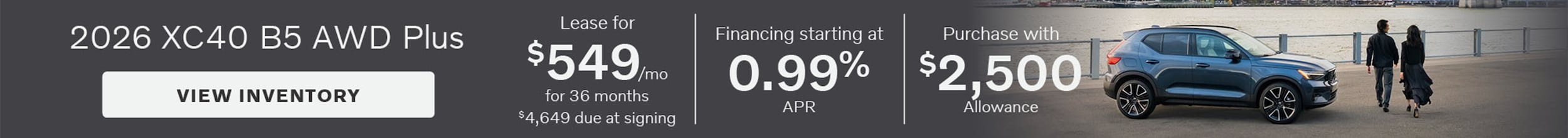 Enjoy one of our Volvo XC40 lease deals in a way that other stores just can't compete with. Interested in that hard-to-find Certified by Volvo model? Check with us first. When you shop with us here, you'll have a team of experts working to craft a deal commensurate with your expectations.